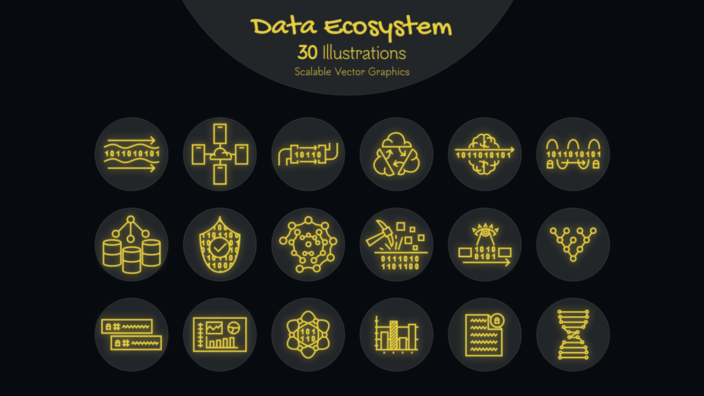 Dive into the World of Data Ecosystems with this 30-Piece Vector Illustration Set