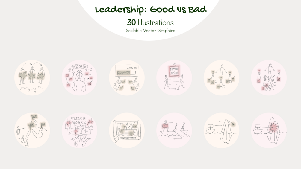 Leadership: Good vs Bad - 30 Illustrations SVGs